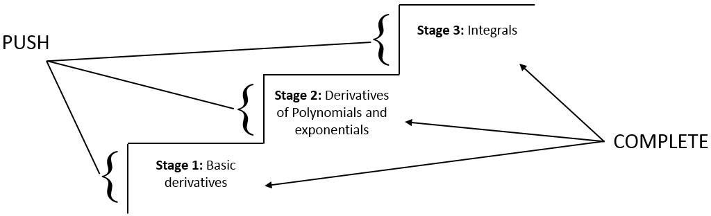 Stage 2: Derivatives of polynomial and exponentials Stage 3: Integrals