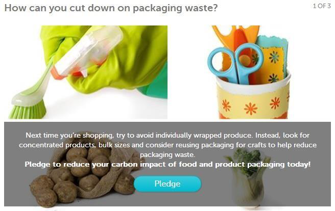 With a flexible learning program structure, Recyclebank encourages new visitors to try out the rewards program by navigating through three pledges to collect points. Through this, it conveys a few educational points on “how to help the planet” through purchasing decisions, as well as tips on recycling. It also encourages the visitor to sign up on the website and see where they rank among their friends. Once registered, members can earn points on their own time by learning, reading, pledging to take action, making greener purchases, or using fewer resources.